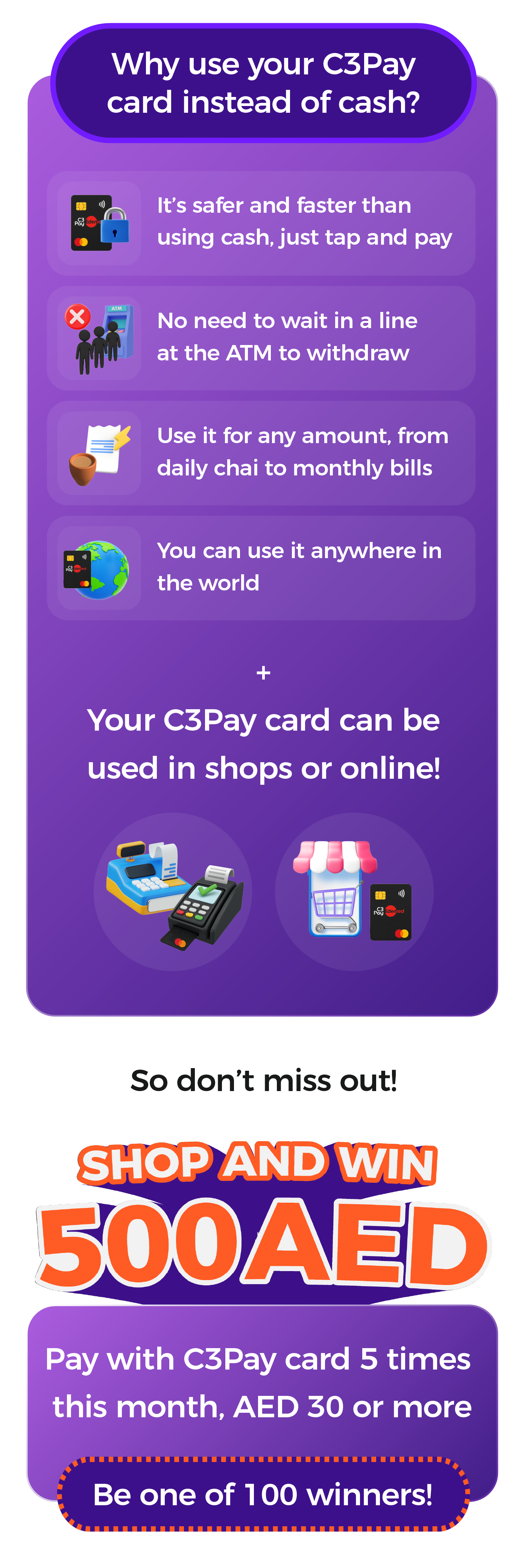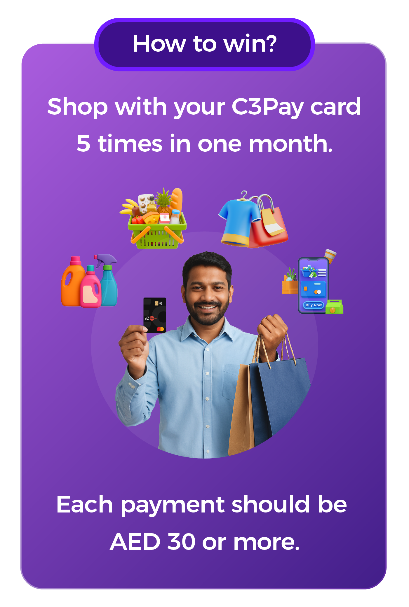 Each transaction should have a minimum spend of 30AED.